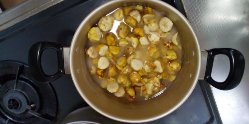 栗のむき方はとても面倒です。その手ほどきは各サイトを見て、試してみてください。3人で30分かかりました。